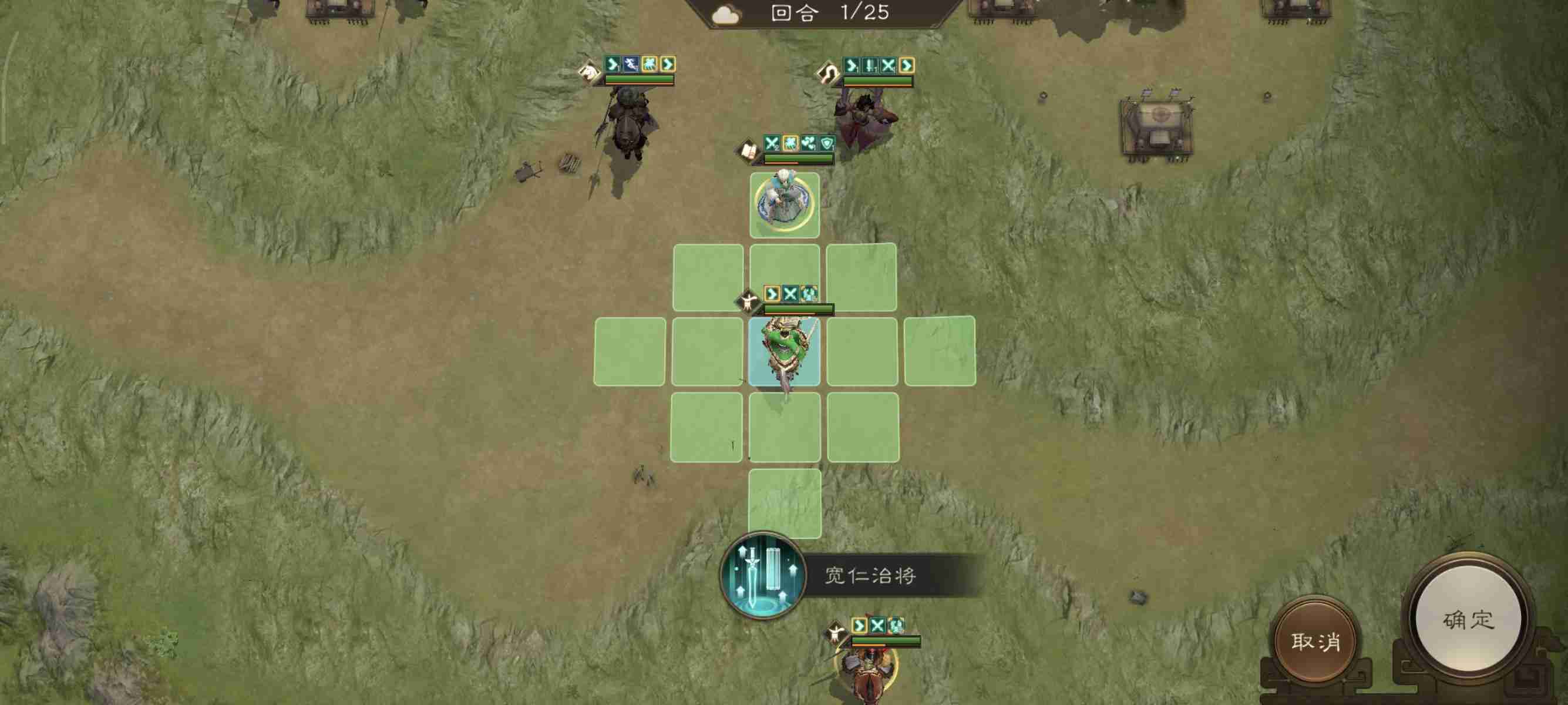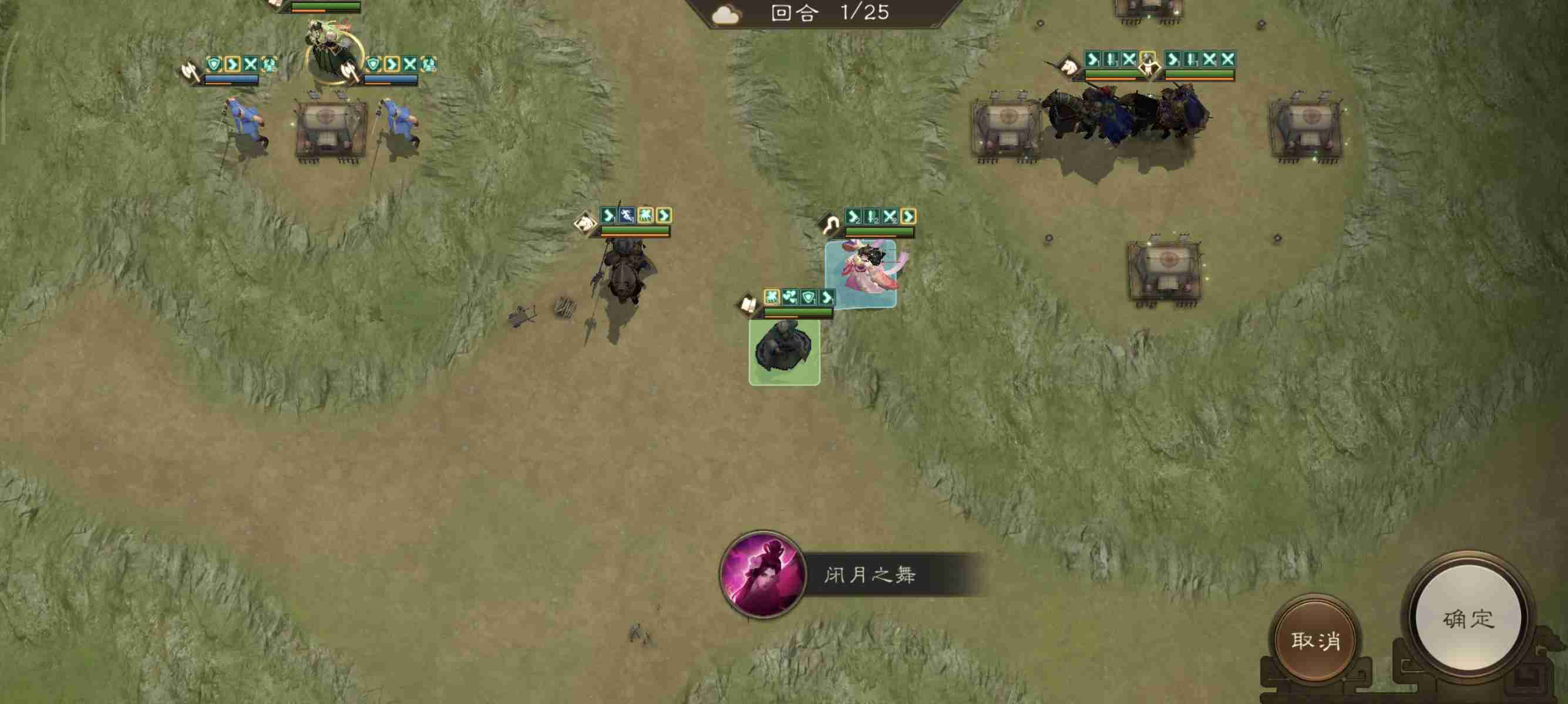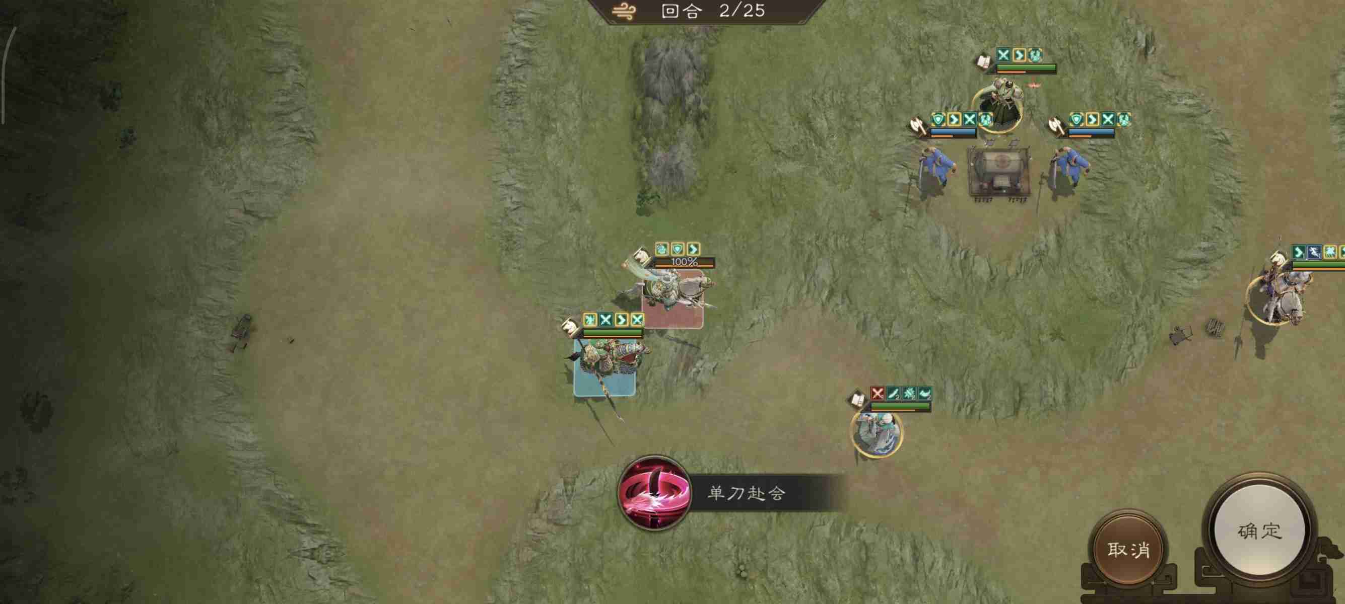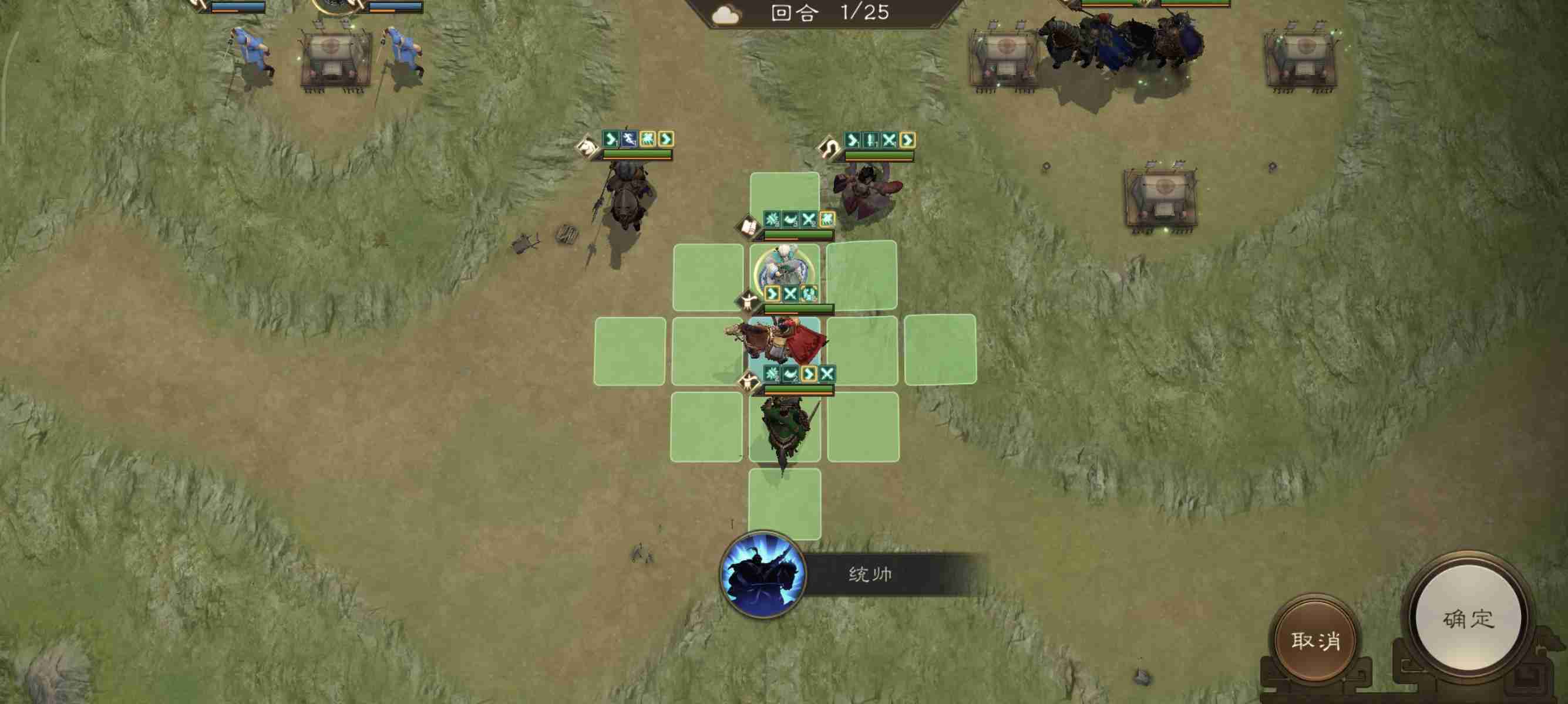 开局我军被分割为多个战场,所以想一回合通关比较难!本关的难点是如何尽量把诸葛的buff刷满。