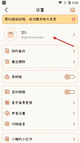 1、在设置页面点击ID头像栏,也就是之前登录的相同地方。