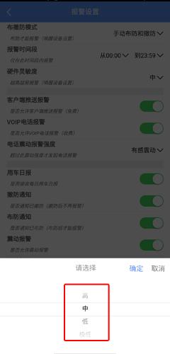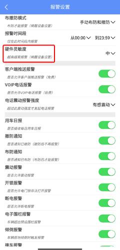 3、在报警设置页面中点击硬件灵敏度按钮;