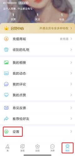 1、在我的页面中点击设置按钮;