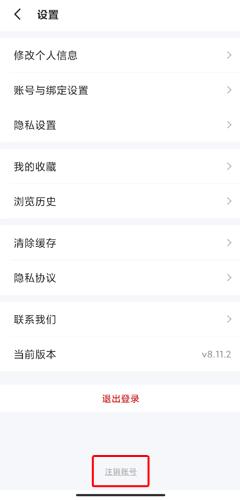 2、在设置页面中点击注销账号按钮;