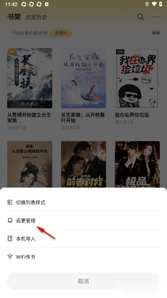 3.这时候在页面下方的位置将【追更管理】的选项点击一下。