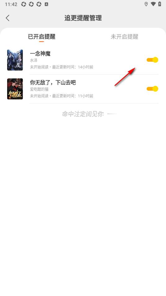 4.来到当前打开的窗口中,选择页面上不想要提醒的小说点击开关按钮即可取消。