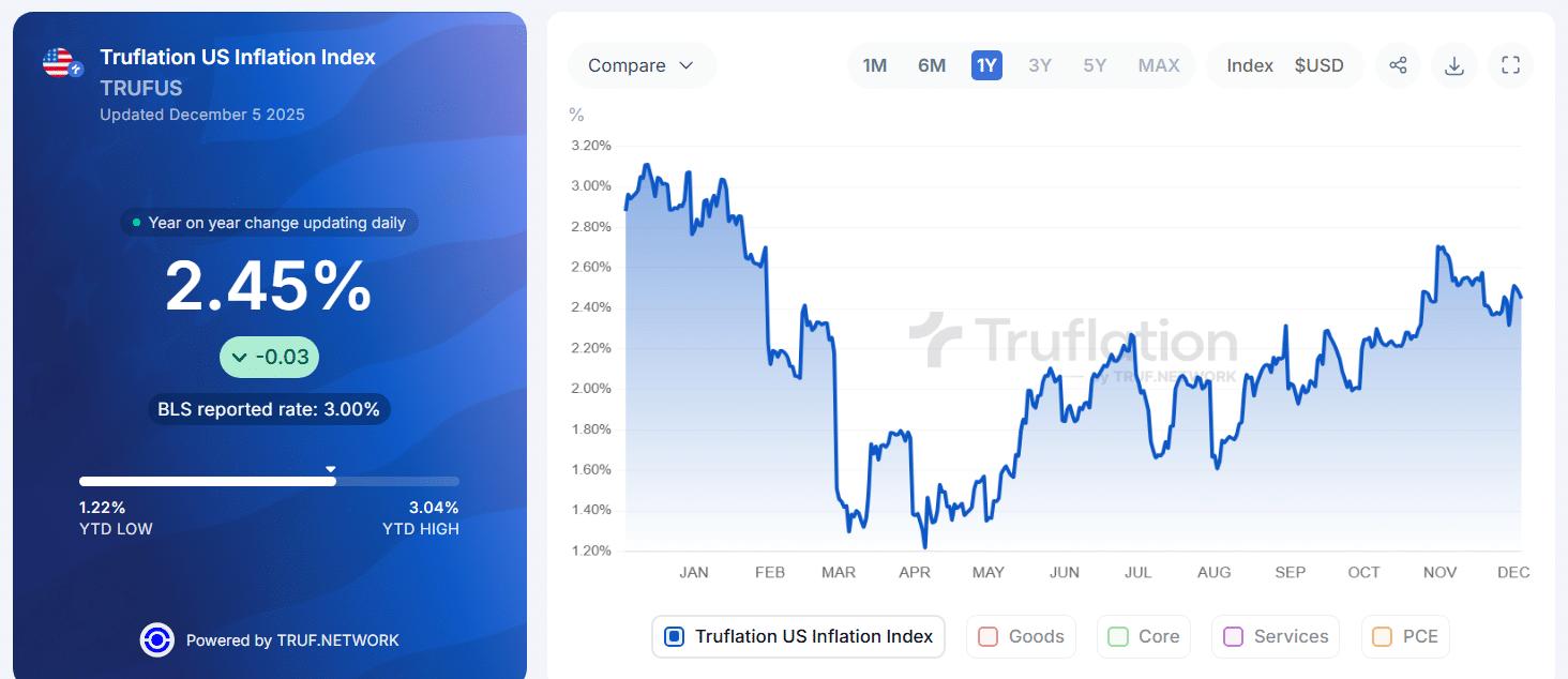 - 实际通胀数据显示,同比通胀率为 2.45%,低于 11 月份的 2.7%,而美国劳工统计局 (BLS) 的消费者物价指数 (CPI) 读数接近 3.0%。