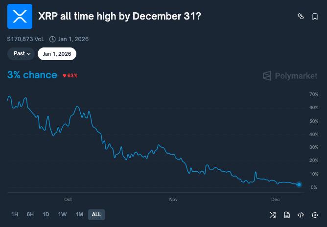 随着年末临近,预测市场显示,这种情况发生的可能性微乎其微。XRP到12月31日将创下历史新高。