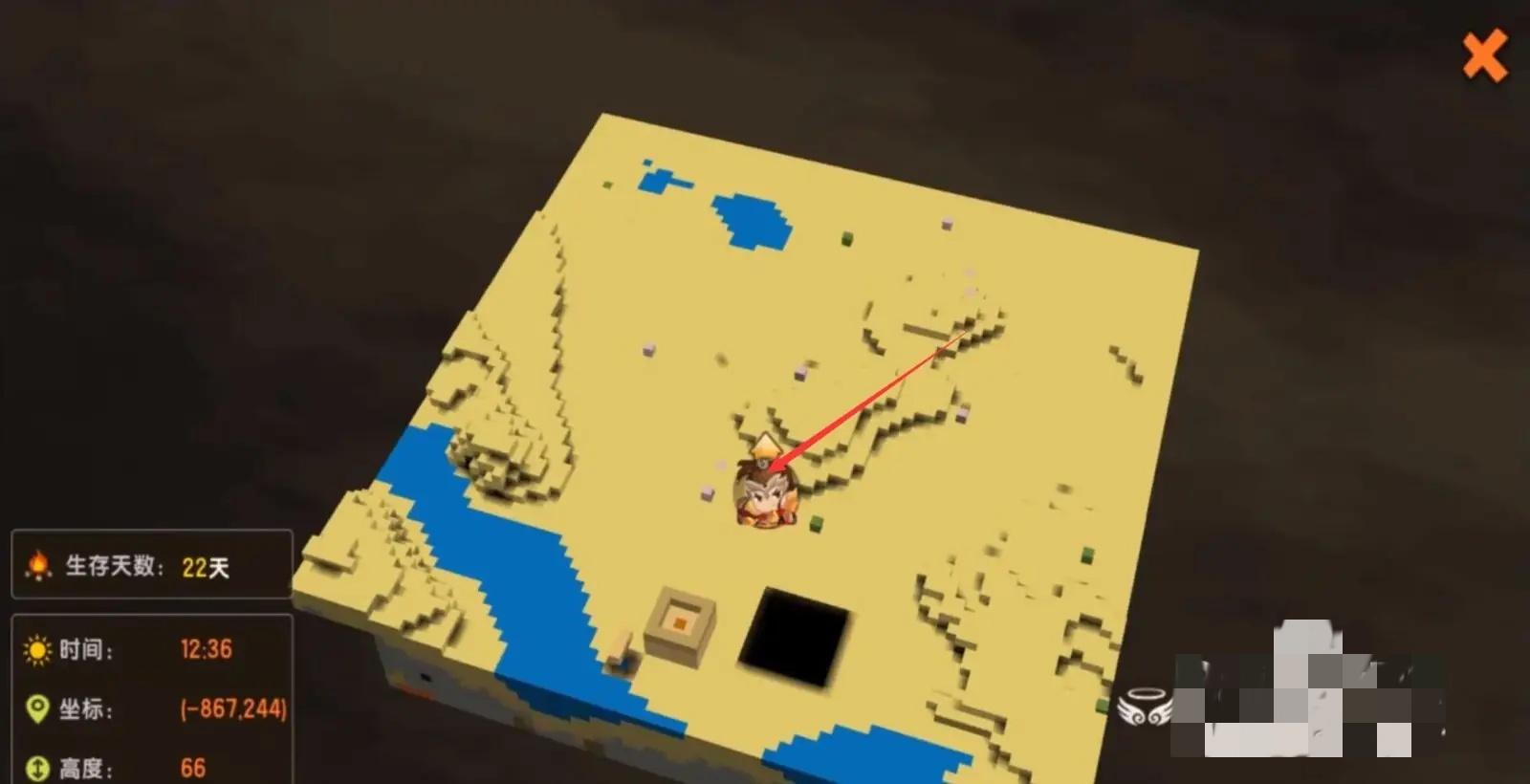 打开地图到达沙漠对应的位置。