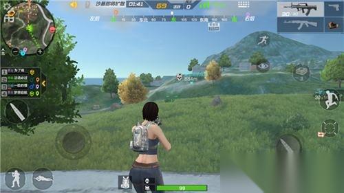 另外一个威胁来自南方,那边是科学城建筑群,人流量很大,如果安全区出现在北侧区域,那么必会有很多敌人从那边向我们这边涌来。我们先来看看如何应对东侧的敌人。我们先从敌人的视角来分析进入建筑群的情况,如图1所示,我们可以看出当驾驶载具从东侧进入建筑群之后,主要的建筑都集中在道路的左侧,右侧的建筑分布稀疏而且距离公路较远,另外,细心的小伙伴会发现,道路左侧的建筑是存在围墙的,这样的话当敌人靠近时,我们冲到建筑以外对敌人进行攻击的时候,还有掩体可以进行依托,相比于右侧更加安全。因此我推荐大家在公路的左侧设防。