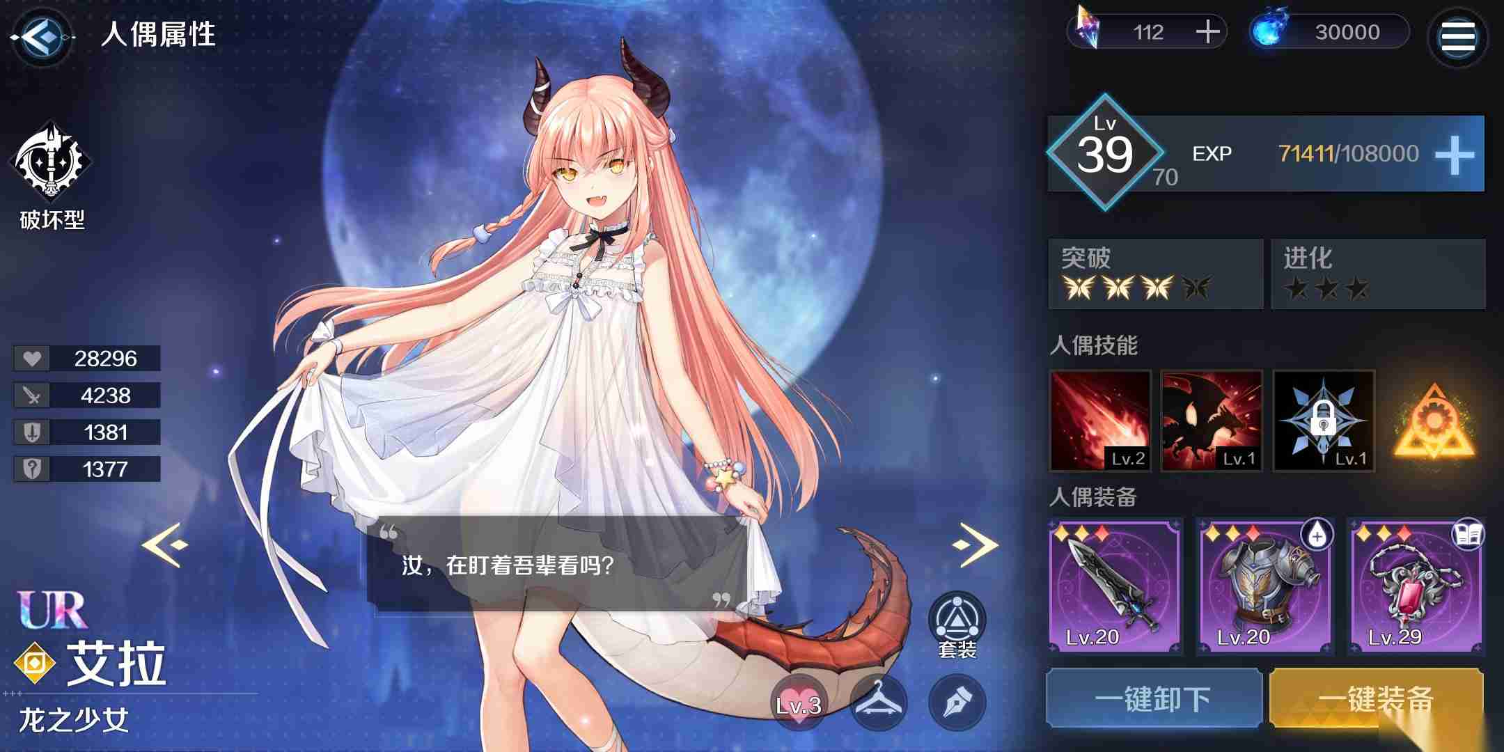 刚开始是用琴女龙女剑圣,怎么都打不过,琴女死了绷带奶上场全是1级装备感觉比琴女还好用就换了绷带奶,第一阶段随便过,第二阶段怎么都奶不过来,试了好多次终于过了,其实很简单,龙女可以换,剑圣个人感觉还是有必要的(释放技能可以规避伤害,其他输出练度不高可能被两个技能秒掉),第一阶段血少了绷带奶一下就好,然后龙女变身,之后就只点绷带技能和剑圣大招,右下角那个啥满了就无脑点龙女技能和剑圣大招就好,那啥状态过了也继续,中途不要点绷带技能了(刚开始老是死就是自己想多了想奶结果怎么都奶不起来),绷带大招是自动释放的,所以奶量是够的