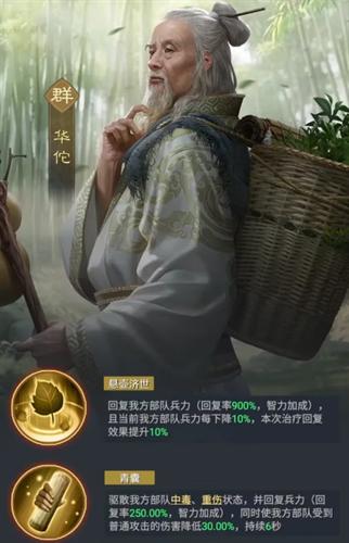 围绕华佗构建阵容时,需优先考虑其技能协同性与队伍功能完整性。“三仙盾”是当前主流且适配度最高的基础体系之一。该阵容以左慈为前排核心、华佗为中后场治疗支点,形成攻防兼备的稳定结构。左慈提供控制与减伤,华佗则通过高频单体恢复保障关键单位存活率,二者配合可显著延长战斗续航时间,降低容错压力。
