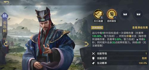 “三仙盾”的第三位成员可根据资源情况灵活调整:若拥有张角,可组成标准三仙体系,利用其群体伤害与左慈形成双输出轴,由华佗承担全队续航任务;若暂缺张角,则建议替换为司马懿,转型为“中毒盾”变阵。司马懿的指挥类特性可触发额外异常叠加,并与左慈共同构建多段中毒链,增强持续压制能力。