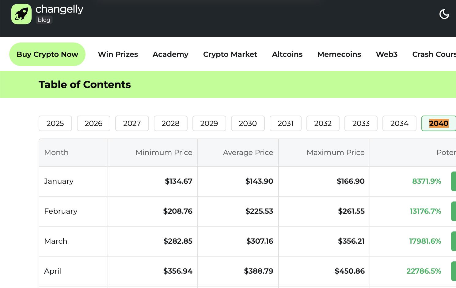 例如,Changelly 加密货币交易所估计,XRP 到 2040 年 4 月可能会达到 380 美元,大约还有 14 年时间。另一方面,Telegaon 分析师认为,即使到 2050 年,XRP 的价格也不可能达到 380 美元,预计其最高价格为 128 美元。