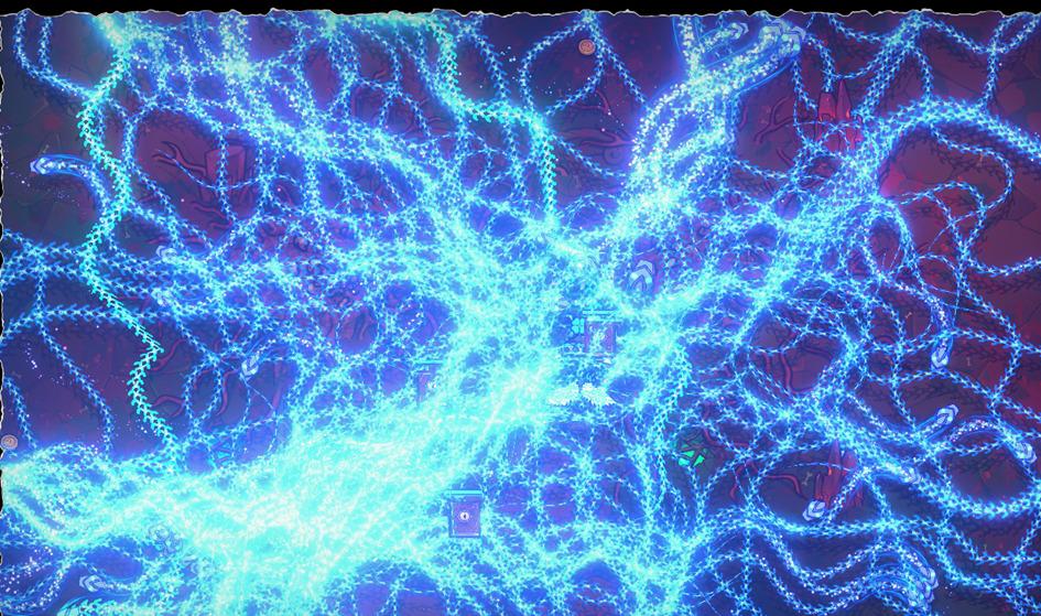 冥蛇搭配了自动导航之后可以自动寻找敌人,然后再加上多重射击,一次三条蛇出去,三条蛇消失的时候会分裂成9条小蛇自动寻敌,再加上加速器的加速和冰霜结晶的冰冻!