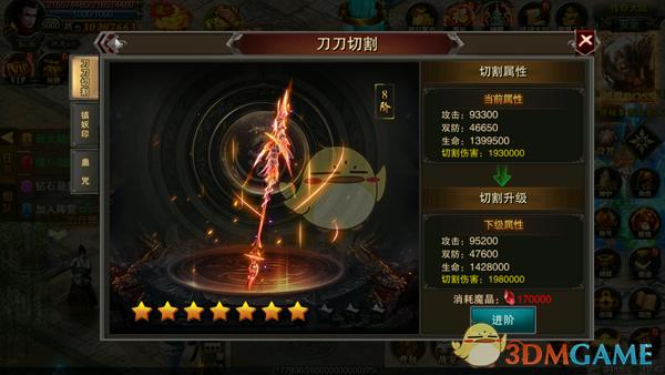 切割系统的作用很大,在前期多小伙伴们的帮助非常多,你的切割升级升的越高,切割伤害就越高,切割系统的伤害是在基础伤害上增加你的切割伤害,消耗魔晶即可进阶切割系统,魔晶的获得可以在商店使用钻石和元宝购买,每日可以购买一百次,当然了使用战功也是可以兑换魔晶的,战功的获得是在咱们游戏内的跨服活动英雄会内获取,每周三,周六的晚上19:00-19:40开放,大家可以通过这个时间段进行跨服活动获得军功来兑换魔晶用来圣级切割系统。