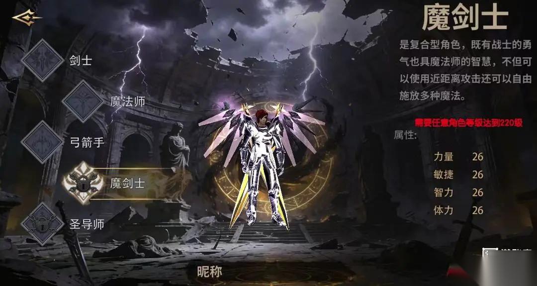 四、魔剑士:竞技单挑的爆发天花板魔剑士是兼具物理与魔法双系伤害的高阶职业,需通过98元职业卡解锁或等级逐步解锁,核心定位为竞技场景的单挑王者,适合喜欢热血对抗的玩家。其核心优势是技能爆发极高,可根据对手属性切换输出形态,实现“一套带走”的极致竞技体验。场景适配方面,魔剑士在1v1竞技、小型团战中表现突出,凭借双系伤害机制可轻松压制剑士、圣导师等职业;搬砖效率中等,适合定点刷高爆率地图获取稀缺资源。职业克制关系上,魔剑士对剑士、圣导师具备明显优势,是竞技冲榜的核心选择。玩法与加点建议:灵活分配力量与智力属性,根据输出形态调整比例,追求极致爆发伤害。竞技时需抓住技能冷却间隙,先手突进敌方脆皮职业(如魔法师、弓箭手),一套爆发完成收割;搬砖时可利用双系技能适配不同属性怪物,提升单图收益。需注意,魔剑士生存能力中等,避免单独陷入多线包围。