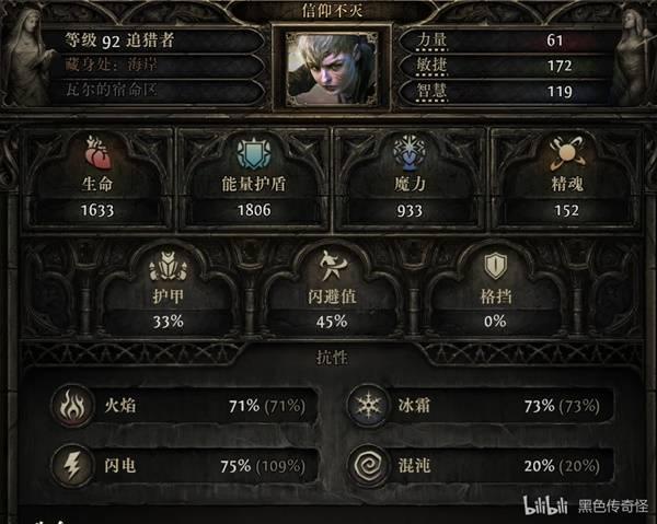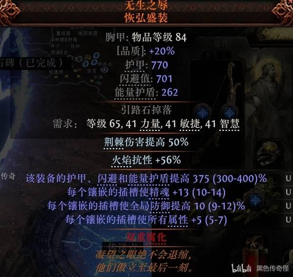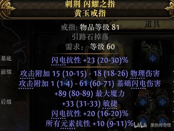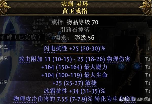 (戒指上面尽量多找点伤,抗性,敏捷或者智慧属性,因为我要把天赋上多余的属性天赋点转成全局防御和伤害,攻坚可以换一条投射物技能等级项链)