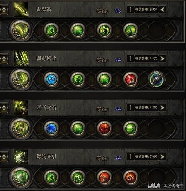 毒爆箭+中毒III+致命毒素II+迸发之疫+分叉(再不开阔的地形使用此技能清小怪)