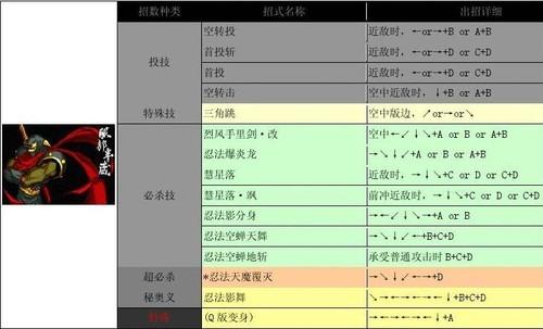 侍魂2出招表大全 侍魂2(全人物)出招表分享