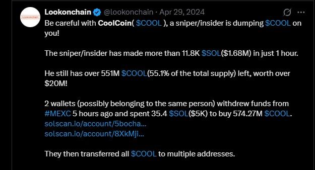 这并非$COOL加密货币首次出现价格剧烈波动。加密货币圣诞行情再次掀起波澜一段关于官方发出的严重警告的记忆区块链追踪平台 Lookonchain截至2024年4月29日的数据。