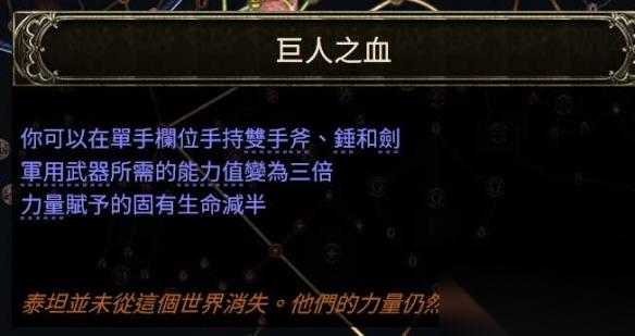 2、更后期一些我们会选择使用双手锤,点出巨人之血大点天赋,这样我们可以同时装备双手锤和盾