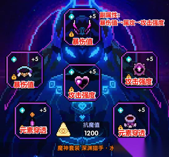副属性最佳为:元素穿透+水攻/暴伤值带一个,其他带水攻+暴伤值