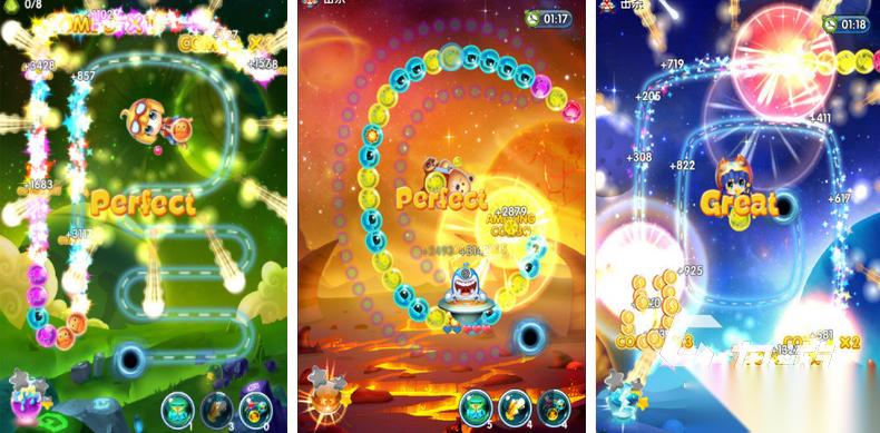 玩家在游戏中需要控制炮台,快速发射互相匹配的颜色球来阻止它们进入终点。三个相同颜色的球连在一起就会消失,虽然听起来简单,但越往后越需要你去精准判断。关卡设计很有层次感,不同场景的轨道走向和难度都一直在变化。道具系统加入了很多辅助工具,关键时刻能够帮上你大忙。上手门槛低,但想拿高分还得多练练眼力和反应速度。