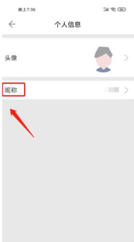 3、进入个人信息,点击【昵称】。