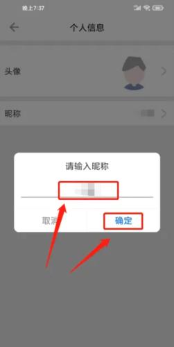 4、进入弹出窗口,输入昵称,点击【确定】。