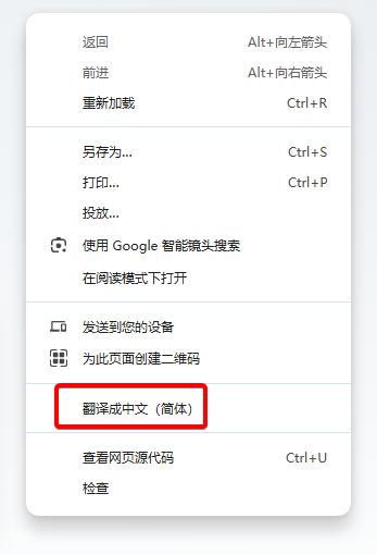 2. 选择 “翻译成中文(简体)”(或你的默认语言)。