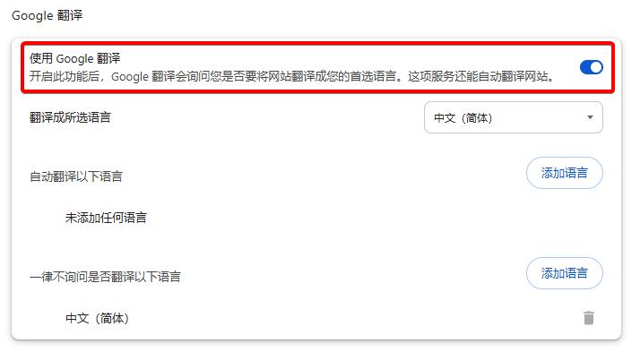 2. 确保 “在需要时提供翻译” 已开启。