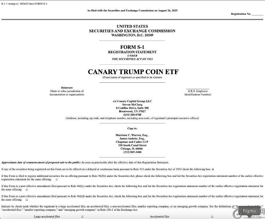资产管理公司 Canary Capital 已向美国证券交易委员会 (SEC) 提交了 S-1 注册文件,计划推出一只与唐纳德·特朗普总统相关的 memecoin TRUMP 挂钩的交易所交易基金 (ETF)。