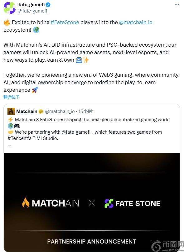 AI公链Matchain与Web3链游平台FateStone达成深度战略合作