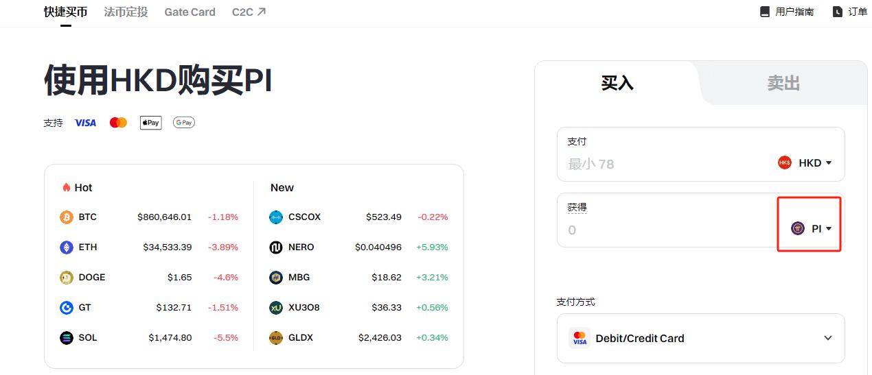 1.将Pi币充值至Gate.io账户