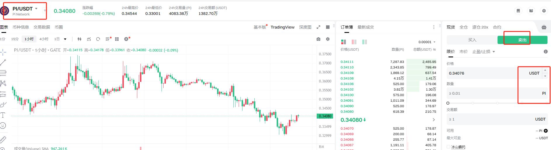 进入Gate.io现货交易区,搜索“PI/USDT”交易对。根据实时价格选择交易方式:输入卖出数量(建议分批挂单,如3-5次,避免单次抛售压低价格),确认交易后获得USDT。