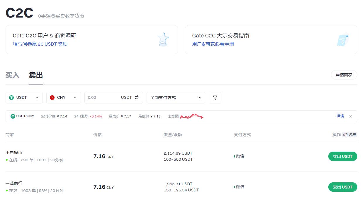 P2P交易提现:进入Gate.io“法币交易”区,选择“出售USDT”,筛选商家(优先选择“认证商家”和“高成交量”标签),输入出售数量及支付方式(银行卡/支付宝)。按商家指引完成转账,上传凭证后等待对方放币(通常5分钟内到账)。