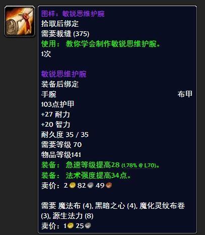 wow敏锐思维护腕需要材料一览