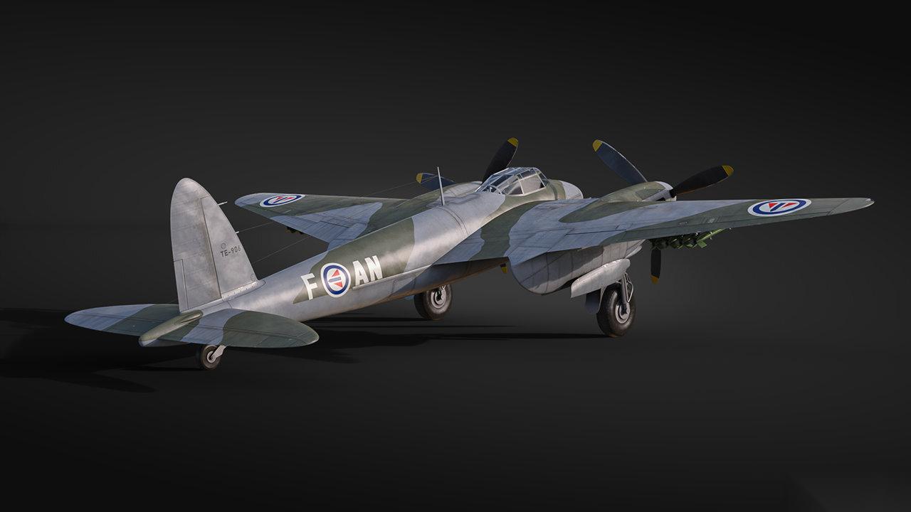 蚊群三兄弟的首款机型为标准昼间战斗机 F Mk II 型,作为早于 FV Mk II 的纯空战版本,该型配备两台劳斯莱斯梅林 XX 型发动机,未配备炸弹、火箭弹或对地武器。四门 20 毫米希斯帕诺机炮与四挺 7.7 毫米机枪的配置使其成为瑞典科技树中阶房极具威胁的双发重战——诚信对头,非死即伤!