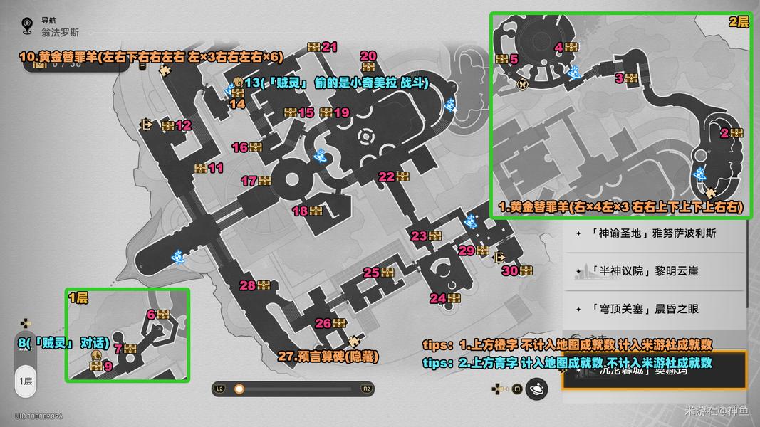 「2个贼灵」=只计入地图成就数,不计入米游社成就数。