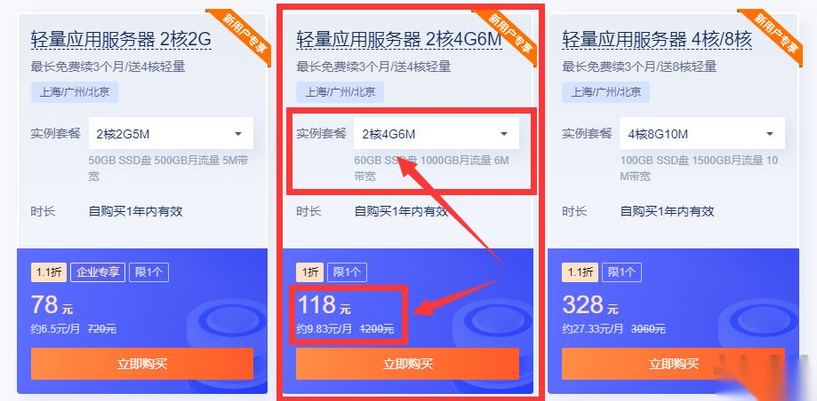 下面图片就是本教程所用使用的腾讯云的轻量应用服务器,2核4G,月流量1000GB,系统盘SSD盘60GB,6M宽带,可以满足大约5个用户,可参考:腾讯云服务器-tenxun.dechenyun.com