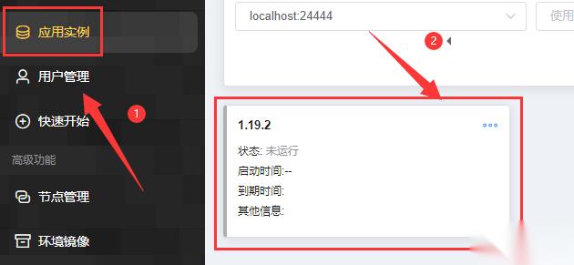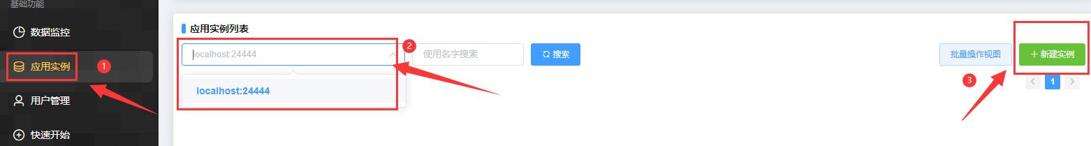 1、新建实例,点击应用实例,选择24444,点击新建实例