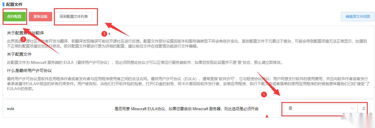 5、我们需要点击特定配置,[通用] eula.txt ,勾选是,