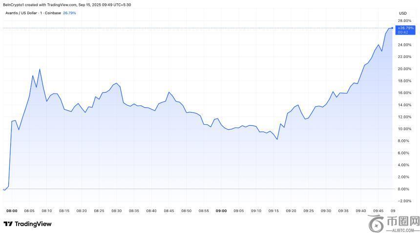 在 Binance、Upbit 和 Bithumb 三大主要交易所上市后,Avantis (AVNT) 在今天亚洲早盘交易中飙升至历史新高。
