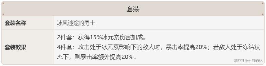 实打实的15%冰伤加成及20%暴击率提升,且敌人被冻结后额外提高20%暴击率,如果再加上队伍双冰共鸣15%的暴击率提升,这就是55%的暴击率了呀!大大降低了角色双爆的压力!