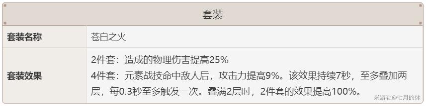主c物理套,物伤提高25%,4件套效果,完美适配凯亚,凯亚e技能cd6s,效果持续7秒,还溢出1s,能全程保证凯亚都能吃到效果。