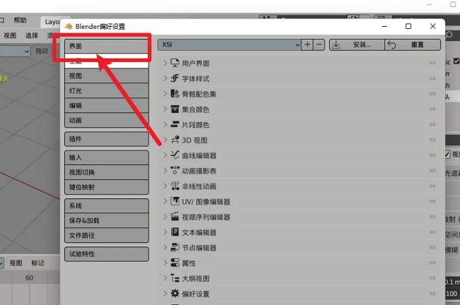 2、在打开的窗口界面中,点击左侧栏中的"界面"选项。