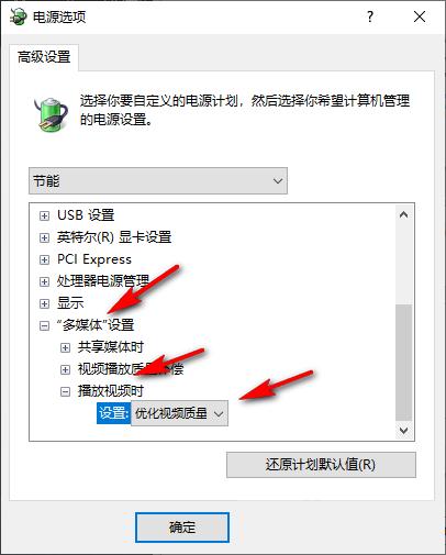 7、最后打开“多媒体设置”选项,将“播放视频时”设置为“优化视频质量”,再点击“应用”和“确定”选项即可,如下图所示。