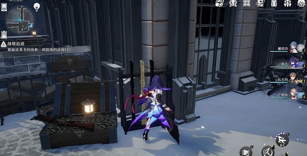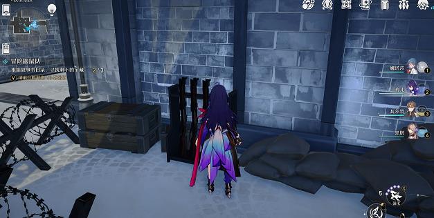 径直走入战壕,将三个角落的每个角落的枪摆放至3把,即可完成谜题,获得宝箱~