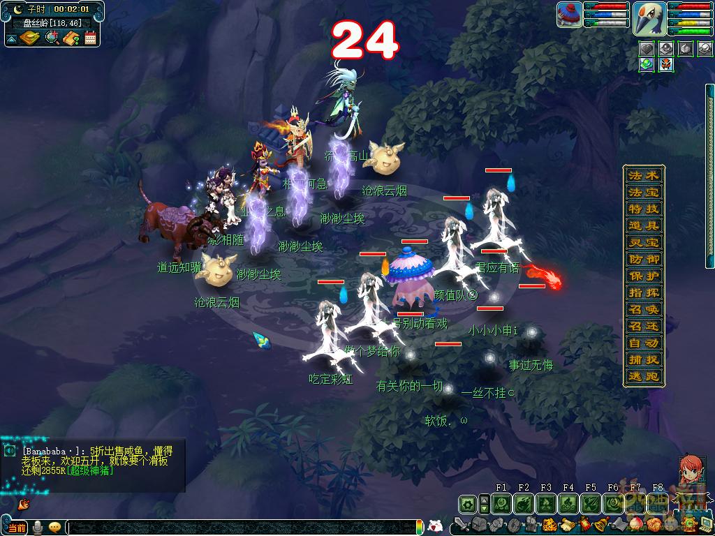 主怪门派为凌波城,物理伤害较高,除了2个混沌兽外其余8个单位皆为输出门派,整场战斗难度较高,需要辅助具有一定抗性。蜃气妖开局破碎,第二回合上干将,第三回合横扫,必要时需要携带一定的小蓝药。建议优先击杀主怪和蜃气妖,混沌兽活血较多,可最后击杀。
