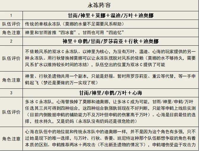 3、选择阵容要充分考虑圣遗物的刷取难度,尤其是已经有了一个队伍再选择第二个阵容时,两个队伍的8个角色在刷取圣遗物时要尽量集中,事半功倍。比如现在深渊使用率最高的两套阵容“雷神国家队”和“永冻队”,为什么大家不约而同的都选择了“雷神国家队”和“永冻队”,首先这两套阵容的强度足够强,另一个很重要的原因就是这两套阵容的角色(尤其是输出角色)佩戴的圣遗物相对集中:甘雨、神里四冰套;雷神、香菱、莫娜绝缘套;行秋两水+两追忆;申鹤两冰+两追忆,我们只用刷取“芬德尼尔之顶(雪山)”和“桦染之庭(八酝岛)”这两个副本,产出的四件圣遗物全都有用不会浪费,两个队伍同时提升。