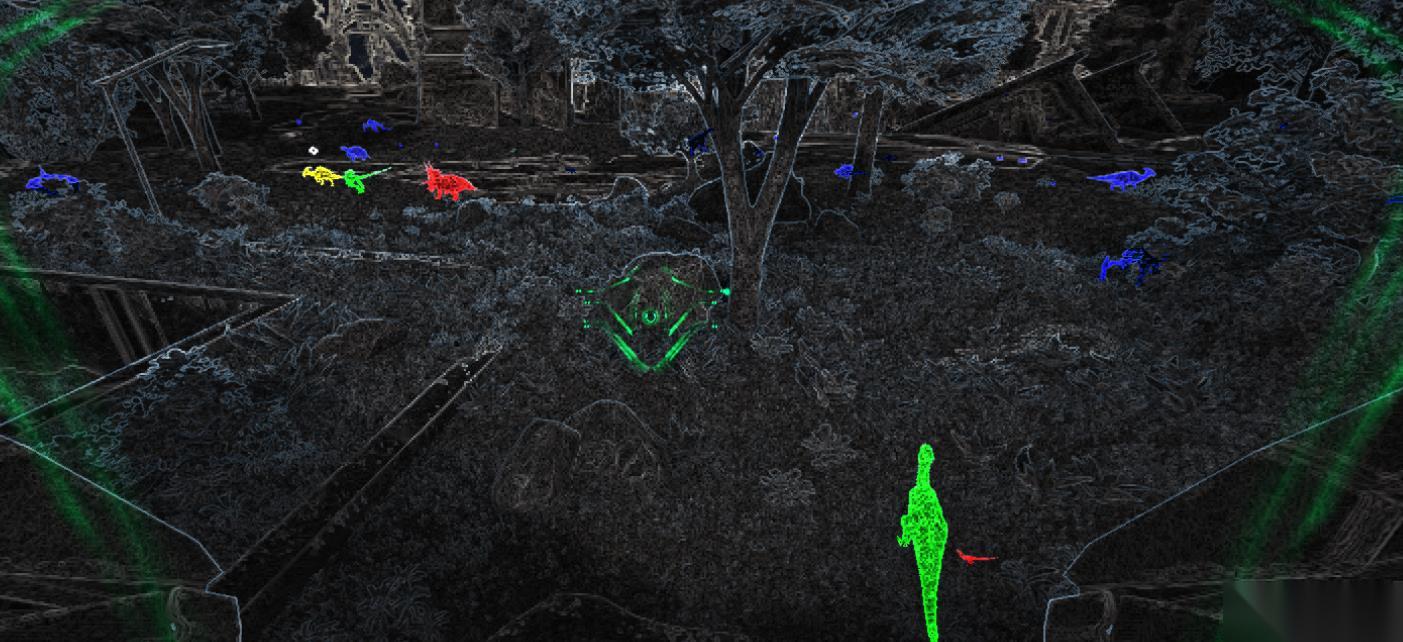 可以从界面上透视查看到侦查范围里的所有生物,一般蓝色代表着中立,浅蓝绿色则代表着已经死亡或者快要死亡,而红色就代表着正在战斗。黄色意味着受到惊吓正在到处乱跑的生物,绿色则是代表对我们好感度较高的友方单位。点击左键的话就会选定具体的生物进行标记,等退出侦查模式过后,同样能看到被标记的生物。