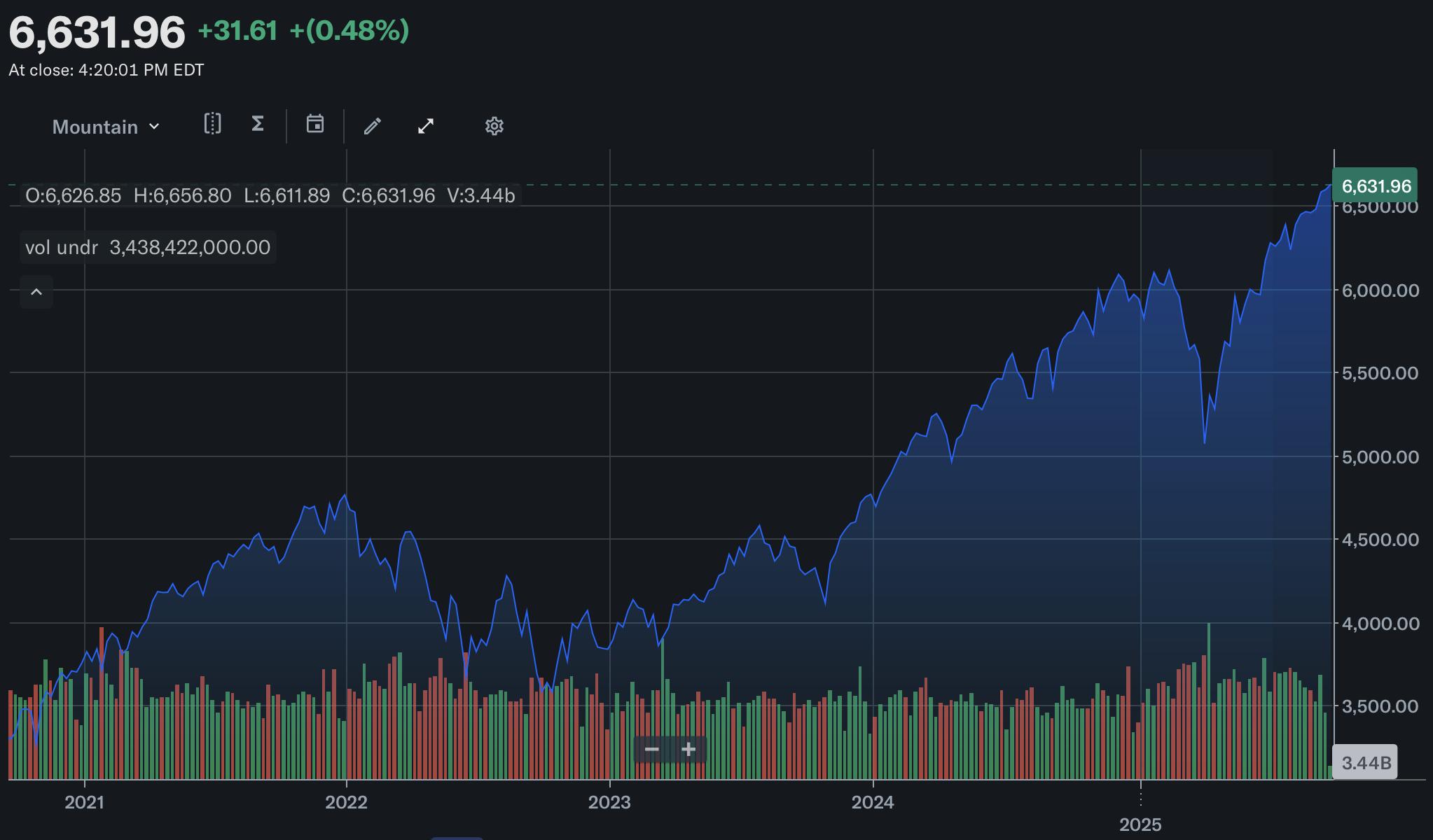 标准普尔500指数上涨0.48%,至6,631.96点,纳斯达克综合指数上涨0.94%,至22,470.73点。道琼斯工业平均指数上涨124点,涨幅0.27%,收于46,142.42点。就在美联储宣布2025年首次降息一天后,三大基准指数均在盘中触及纪录高位。